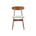 The New Classic Morocco Dining Chairs are a picture of Mid-Century Modern design with tapered legs, curved oval seatbacks, and classic walnut brown color. Easy care, natural 100% polyester foam cushions provide comfortable seating. A perfect accent chair in any room.