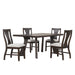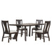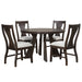 The Chestnut Ridge 5-Piece Dining Set brings together durability and style, featuring a round dining table and four side chairs that create an inviting space for everyday meals or cozy gatherings. Crafted from solid Rubberwood, manufactured woods, and wood veneers, the table offers a strong, stable foundation with sleek transitional styling. Its wide bottom angled legs and rich finish provide a versatile touch of sophistication that complements any décor. The round table offers intimate seating for four, perfect for dining, conversations, or game nights. The side chairs, upholstered in soft 100% polyester fabric with full foam cushioning, ensure ultimate comfort, making this set both functional and stylish for any home.