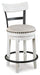 | Details | D546-13: Made of pine wood, veneers and engineered wood, Two-tone finish, Black metal footrest, Seats up to 4, Assembly required, D546-524: Made with wood, engineered wood and metal, Vintage white finish, Cushioned seat with linen colored polyester upholstery, Smooth 360-degree swivel, Nailhead trim detail, Assembly required, | |