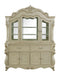 Designed to be used with the matching Buffet , the Monique China Hutch in Champagne combines timeless elegance with heirloom-quality construction. Crafted from poplar solids and birch veneers, this piece is built to last, ensuring strength and durability. Its intricate detailing and ornate carvings are characteristic of classic Baroque furniture, known for its opulence and grandeur. The elegant curved lines and elaborate design elements enhance its sophisticated look, making it a striking centerpiece for any dining room. The intricate, multi-step champagne finish is painstakingly applied to enhance the natural beauty of the wood, with antique gold glazing highlighting the moldings and carvings. Inside, thick tempered glass shelves provide ample space to display your finest china, protected behind intricately shaped beveled glass doors. Thoughtful extras include exterior touch controls for display lighting, which add ambient lighting to your dining space. Transform your dining area with the Monique China Hutch and enjoy unparalleled elegance and functionality.