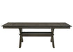 The Gulliver Wood Trestle Dining Table in rustic brown is a perfect addition to your dining space, designed for both style and durability. This set includes one dining table top and one robust X-style trestle base, crafted from solid rubberwood, manufactured woods, and acacia wood veneers, ensuring it stands the test of time. The multi-step rustic brown finish highlights the intricate patterns of the natural wood grains, with subtle notes of gray and charcoal brown adding an elegant touch. The table''s modern farmhouse charm seamlessly blends clean lines with the cozy warmth of distressed wood, creating a sophisticated yet inviting dining area. With two 14" self-storing leaves, the table extends from 66" to 84", comfortably accommodating up to eight people, making it perfect for family gatherings and special occasions. Choose the Gulliver Wood Trestle Dining Table for a blend of contemporary style and traditional rustic charm that brings comfort and elegance to your home.