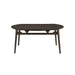 The Rex Mid-Century Modern 65" Round Dining Table with Self-Storing Leaves in Walnut Brown is a versatile and stylish addition to any dining space. Crafted from solid rubberwood, manufactured woods, and oak veneers, this table ensures exceptional stability and longevity. Its classic mid-century modern design features clean lines, rounded edges, and angled, tapered legs, embodying a timeless elegance. The multi-step walnut brown finish, hand-rubbed with a clear topcoat, enhances the natural beauty of the wood grain. This innovative dining table includes self-storing leaves that extend to provide roomy seating for six, making it perfect for both intimate meals and larger gatherings.