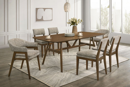 New ClassicThe Miller 7-Piece Mid-Century Modern Dining Set includes a 78" table, 4 side chairs, and 2 arm chairs in a warm walnut finish. Expertly crafted fr...