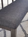 It’s so easy being gray—at least this 6-piece dining set makes it seem that way. This transitional dining table set sports a charcoal gray finish with textured gray upholstery for an on-trend and relevant appeal. Plushly upholstered seat cushions in a practical polyfiber make it a pleasure to linger at the table. Brilliantly styled seating choices add interest and versatility at mealtime.