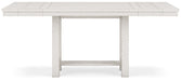 | Details | D642-32: Made with rubberwood solids, ash veneer and MDF substrates, Antiqued white finish with wood grain texture, Tabletop with planked effect, Two 12” extension leaves, Table extends by pulling both ends and dropping in leaf, Assembly required, D642-124: Made with wood, Antiqued white finish with wood grain texture, Foam cushion with polyester upholstery, Nailhead trim, X-back, Assembly required, | |
