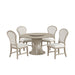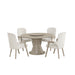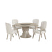 The Gwendolyn Round Dining Set blends modern elegance with timeless craftsmanship. Made from solid rubberwood and oak veneers, it features an 54" round table with a built-in Lazy Susan and four upholstered arm chairs. A sculptural curved base and cerused taupe finish offer a soft, versatile look that suits a range of interiors. Plush padding and clean lines provide a comfortable, contemporary dining experience with lasting quality.