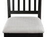 Introducing a modern counter-height dining set with a touch of classic charm. Featuring a deep black finish, complemented by a contrasting light table top inset, this ensemble offers both comfort and straightforward style. The vertical slats on the chairs provide a subtle design detail, making it a versatile choice for various dining spaces. Durable, stylish, and functional, it's the perfect addition for everyday meals or special occasions.