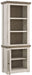 Details Made with pine wood, pine veneer and engineered wood, Two-tone finish; distressed weathered gray top with distressed vintage white base, Round metal knob with aged iron-tone finish, 3 open shelves, Cabinet with 1 shelf, Assembly required
