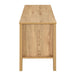 The Thayer 47" TV Console offers stylish storage with a modern organic touch. Crafted from eco-friendly wood in a natural oak finish, it features clean lines, vertical reeded detailing, and rich woodgrain texture. Behind two doors, adjustable shelving and rear cable cutouts provide organized space for electronics, media, and gaming gear—perfect for keeping your entertainment area tidy and streamlined.