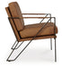 Work an ultra-cool look with this accent chair. A linear metal frame in a bronze-tone finish lets your love of contemporary style shine. Tailored cushions and armrests wrapped in sumptuous caramel-colored leather enhance this piece’s feel-good touch.