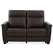 Treat yourself to high style and superior comfort with Crawford's triple power off-the-floor traditional design. Crawford includes power motion recline, a comfort-high back with power headrest, and power lumber support. Designed to emulate a stationary aesthetic, the silhouette features a fully finished back frame for 360-degree visual appeal. The slender flared arm design that is further embellished with head-to-head decorative nail trim creates an overall scale suitable for small living spaces. Additional features include a drop-down table in the center back of the sofa with a hard surface, cup holders, and USB & USB-C charging ports. Crawford is available in a selection of semi-aniline leather/match applications with heavy grain texture and subtle two-tone coloration that's finished for active family environments. Let Crawford become the focal point of your living space, where relaxation meets modern technology in perfect harmony.