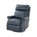 Smaller scale classic rolled arm swivel glider recliner. Semi attached split back design, loose boxed seat cushion with pocketed coils springs encased in foam, wrapped in Dacron with a feather down topper. Handle operated.