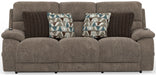 Joya - Power Headrest Power LayFlat Reclining Sofa With CR3 Heat/Massage/Lumbar/ZG - Mushroom Product Pub-Back Pillow Arm Design Soft Chunky Polyester Fabric Zero-Gravity Power Recline Shiatsu Massage Feature Power Headrest/Power Lumbar Comfort Coil Seating featuring Comfor-Gel Steel Seat Box