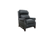 Classic wing back lounge chair recliner with 3-way push thru the arms mechanism and footrest extension. Shaped knee back rolled arms and pleated wings are accented with nail head trim. Adjustable semi-attached zippered pub back and welt boxed loose seat cushion with pocketed coils and down blend feather wrap provides unsurpassed seating comfort. Chippendale hand carved base