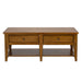 Enjoy family game night around the Lake House cocktail table. Crafted of poplar solids and oak veneers, this piece features an }appealing planked tops with additional wood and peg accents, planked bottom shelf, two push-through drawers accented by antiqued brass knob hardware, anchored by a tapered leg design. The golden oak finish allows for a universal appeal.
