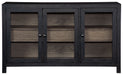 | Details | Made with wood, oak veneer and engineered wood, Black finish outside; warm gray finish inside, 3 glass panel door fronts, Metal knobs with black finish, 2 storage drawers, Assembly required | |
