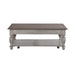Create a relaxed interior look that works for coastal styles, country, and cottage interiors with the Ocean Isle rectangular cocktail table. Crafted of rubberwood solids and New Zealand pine veneers, this piece features a finish with weathered pine, casters for easy movability, turned legs, and is accented by satin nickel cup hardware. Users can enjoy the convenience of added storage with the bottom shelf, perfect for storing magazines, board games, or extra throw blankets.
