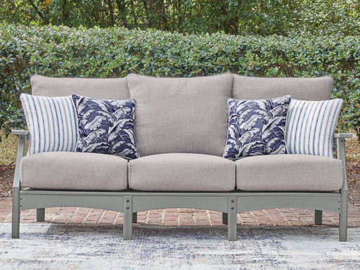 Signature Design by Ashley®This outdoor sofa prioritizes versatile style and comfort, all while providing the durability you need alfresco. Crafted with a sturdy wood-look ma...