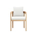 The Wesley Patio Side Chair offers the perfect combination of durability, comfort, and style for any outdoor space. Crafted from FSC-Certified Acacia solid wood, this chair is built to withstand the elements while maintaining its natural beauty over time. The expertly applied light, clear finish enhances the wood grain, adding both aesthetic appeal and extra protection. The chair's white cushions, wrapped in exclusive Sundura™ fabric, provides all-weather protection against fading, mildew, and moisture, ensuring it stays vibrant and fresh in any season. With high-density 6cm foam cushions, you’ll enjoy exceptional comfort and support, making it perfect for relaxation. The Wesley's minimalist, airy design, featuring sleek lines and gently rounded edges, creates a modern yet inviting atmosphere in any outdoor setting. Ideal for those seeking a blend of quality and sophisticated style.