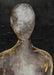 A striking abstract figure, featuring metallic gold and graphite hues, with rich, hand-embellished texture for modern sophistication.