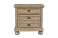 The Allegra 3 Drawer Nightstand in a refined pale pewter finish offers the perfect blend of durability, style, and modern convenience. Expertly crafted from solid Mindi wood, engineered woods, and wood veneers, this nightstand showcases the natural beauty of Mindi's rich grain while providing exceptional durability and resistance to decay. The meticulous multi-step finish, enhanced by a delicate brush treatment and subtle white hang-up effect, adds depth and character to the piece, making it a timeless addition to any bedroom. The transitional design seamlessly fits both traditional and contemporary interiors, with clean lines and subtle curves that add a touch of modern sophistication. Built with heirloom craftsmanship, the drawer construction features four-corner English dovetail joints for strength and durability, along with smooth-rolling full-extension glides for easy access. The fully finished interiors protect your belongings, while the thoughtfully designed hidden storage drawer offers an extra layer of security for your valuables. For added functionality, the nightstand includes convenient USB charging ports mounted on the back, ensuring your devices stay powered up and within reach. The Allegra 3 Drawer Nightstand is an excellent choice for those seeking a stylish, durable, and practical bedside solution.