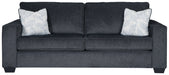 If style is the question, then this sofa sleeper is the answer. Sporting clean lines and sleek track arms, the decidedly contemporary profile is enhanced with plump cushioning and a chenille-feel upholstery that's so pleasing to the touch. Sure to play well with so many color schemes, this sofa sleeper in slate gray includes a pair of understated floral pattern pillows for fashionably fresh appeal. A pull-out queen mattress in quality memory foam comfortably accommodates overnight guests.
