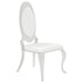 Bold, modern and inspired by Art Deco decor, this round five-piece dining set a statement-making addition to your dining room. The tabletop is incredibly crafted with real black marble, which makes an eye-catching statement against the mosaic shell tiles apron. The ornately carved table base is finished in chrome and plays off of the cabriole style legs of the four dining chairs. Each dining chair is armless in design and features sensationally soft creamy white leatherette fabric to contrast the tabletop. Choose this modern and Art Deco style dining set that serves as a work of art in your home.