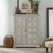 Combined todays modern lifestyle and traditional past with the Big Valley door chest. Crafted with rubberwood solids and wood products, this piece features 5 drawers and 1 door, bottom case dust proofing and fully stained interior drawers. The door opens to reveal 3 adjustable shelves, perfect for user customization.
