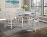 Elevate your dining experience with this stylish counter-height set, designed for both casual meals and lively gatherings. The round tabletop features a charming weathered finish, adding a touch of rustic elegance while maintaining a modern feel. The coordinating chairs offer a supportive high-back design with plush upholstered seats in a soft, neutral fabric, ensuring a cozy and inviting atmosphere. Sturdy legs and a built-in footrest provide both stability and comfort, making it perfect for everyday use. Whether you're sipping morning coffee or hosting friends, this set effortlessly combines functionality and refined style to enhance any dining space.