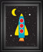 Step into a world where imagination takes flight with this vibrant rocket-themed framed wall art. Designed to inspire young dreamers, the bold colors of blue, yellow, and red contrast beautifully against a deep black starry sky, creating a captivating scene of nighttime adventure. The sleek midnight aura frame with real glass adds a touch of elegance while protecting the artwork, making it perfect for kids' rooms or play areas. Ready to hang and crafted with care, this piece sparks curiosity and encourages endless exploration among the stars.