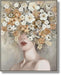 Golden Bloomed Grace Portrait is a captivating hand-painted mixed media canvas that blends delicate figurative artistry with floral elegance. This contemporary piece features a serene female figure adorned with a lavish crown of blooming flowers, enhanced with hand-applied gold accents that add texture and depth. The beige framed canvas is ready to display, making it a sophisticated addition to living rooms, bedrooms, or offices. Each purchase supports a social cause, donating a meal to a hungry American child, making this artwork not only a beautiful focal point but also a meaningful contribution.