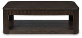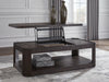 Cool, contemporary flair. Unbeatable function. This lift-top coffee table brings sleek style to everyday living. Fluted details on the apron and posts lend a trendy vibe. For a personal touch, dress up the lower shelf with your favorite decor. And with an integrated lift top, you can transform the table into a casual work area or extra dining space when needed.