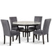 The Celeste Dining Set is an exquisite combination of modern sophistication and enduring craftsmanship. This set includes a chic round dining table with an espresso base and a faux marble top, accompanied by four stunning velvet chairs. Crafted from solid Rubberwood and high-quality manufactured wood components, the dining set is designed for longevity, ensuring a lasting addition to your dining space. The glossy finish on the tabletop provides both heat and water resistance, ensuring easy cleaning and protection from wear. The white and gray veined faux marble top, complemented by deep espresso legs, creates a contemporary and glamorous ambiance. Luxurious seating awaits with the soft and durable 100% polyester velvet fabric covering sumptuous memory foam cushions, offering both comfort and easy maintenance. Tailored for elegance, the rich and luxurious colors of the velvet chairs are enhanced by silver nailhead trim, providing a sparkling final touch to this impeccable dining set. Elevate your dining experience with the Celeste dining set—a fusion of contemporary glamour and enduring quality.