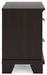 Feast your eyes on this richly versatile nightstand. Its traditional-inspired dark brown finish effortlessly blends with contemporary bright nickel-tone pulls to create a stunning look that's not too stuffy or too trendy. Spacious drawers offer plenty of room to tuck away your bedside must-haves.
