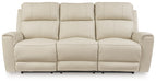 Focus on function. This practical power reclining sofa balances contemporary character and irresistible comfort. Its affordable, expertly matched leather and faux leather upholstery keeps your style up to speed without breaking the bank. Reclining at the touch of a button, the sofa plays well in relaxed, luxe seating areas made for quality time.
