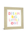 Brighten your child's space with this delightful framed wall art that encourages imagination and ambition. Featuring playful, colorful letters in soft pastels and cheerful yellow, it brings a joyful message of inspiration to nurseries, playrooms, or kids' bedrooms. The elegant ivory frame adds a refined touch while protecting the vibrant graphic art beneath premium real glass. Expertly crafted and ready to hang, this piece blends whimsy and style to create an uplifting atmosphere that nurtures big dreams and happy moments.