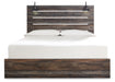 When merged in just the right way, rustic and industrial styles can make one happy marriage. Case in point: this queen panel bed. A refined take on barn board beauty, its complex, replicated wood grain showcases hints of burnt orange and teal tones for a sense of weatherworn authenticity. Love to read in bed? You’re sure to find the pair of retro-chic light sconces and USB plug-ins on the open-slat style headboard such a bright idea. Mattress and foundation/box spring available, sold separately.