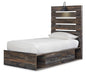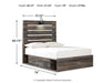 | Details | Includes headboard, footboard, platform rails, side storage unit and wood roll slats, Made of engineered wood (MDF/particleboard) and decorative laminate, Brown rustic finish with burnt orange and teal accents in a replicated wood grain with authentic touch, 4 drawers and 4 open cubbies that each accommodate 10.5"W x 10.5"D x 11"H cube storage bin (not provided), 2 decorative sconce LED lights, each runs on 3AA batteries, 2 USB charging ports, Power cord included; UL Listed, Bed does not require additional foundation/box spring; accommodates most zero clearance adjustable bases with the addition of a bunkie board, Dark-tone industrial hardware, Assembly required, Small Space Solution, Mattress available, sold separately | |