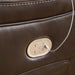 Load up on comfort in a cool, clean-lined and contemporary way with this power reclining sectional in chocolate brown. Rest assured, the expertly matched leather and faux leather upholstery is enriched with a pebble grain effect for authentic appeal and enhanced with jumbo stitching for dramatic contrast. It features a one-touch power control with adjustable positions, along with an Easy View™ adjustable headrest that allows a primo view of the TV even when you're reclined. Extended ottomans provide extra length for leg comfort. A zero-draw USB plug-in at your fingertips lets you charge up as you chill out.