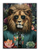 This striking wall art features a regal lion dressed in a vibrant green suit, complete with a floral shirt and tie, surrounded by lush botanical elements. The glossy canvas finish enhances the vivid colors and intricate details, while hand-applied accents add texture and depth for a truly unique piece. Framed in sleek black polystyrene, this contemporary graphic art is ready to display and brings a bold, sophisticated touch to any living room or office space.