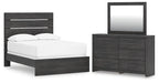 Hollivern Full Panel Bed with Mirrored Dresser