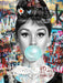 This captivating "Bubble Gum Icon Portrait" is a hand-painted graphic art piece on a high-quality gloss canvas. The artwork features a striking portrait of a woman blowing a bubblegum bubble, set against a vibrant, graffiti-inspired background that blends urban edge with classic beauty. Hand-applied accents add texture and depth, while the glossy finish enhances the colors and details, making it a standout addition to any living room, bedroom, or office. Arriving ready to hang with professional mounting hardware, this contemporary piece brings a unique blend of sophistication and playful charm to your space.