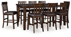 | Details | D596-32: Made with hardwood solids, select oak veneers and engineered wood, Dry, smoky dark brown oak finish, Self-storing butterfly leaf is a flexible, space-saving solution, Leaf folds away under table top when not in use, Seats up to 8, Assembly required, D596-124: Made of veneers, wood and engineered wood, Vinyl upholstery, Cushioned seat, Slat back design, | |