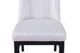 This dining set is a sophisticated blend of contemporary design and artistic flair, ideal for modern homes seeking a touch of elegance. The set features a sleek, round table with a faux marble top that is both beautiful and easy to care for. The table's base is a sculptural marvel, with a dynamic, cage-like structure that is as sturdy as it is stylish. Accompanying the table are plush chairs upholstered in a high-quality, textured fabric, their high backs and cushioned seats offering utmost comfort. The chairs' bold, black frames contrast with the light upholstery, adding a striking visual interest to the set.