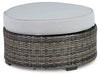 This cool, casual outdoor ottoman will raise the comfort level and visual appeal of your outdoor living space. Made of handwoven wicker in neutral tones of light and dark gray, the cushioned ottoman blends beautifully into your lanai or pool and patio area with a comfy cushion wrapped in Nuvella® high performance fabric that is stain resistant, fade resistant and easy to clean. This versatile companion piece can be used on its own or paired with pieces of the matching sectional to create a space that holds up to Mother Nature and ages gracefully for years of enjoyment.