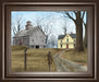 Step into the tranquil world of rural life with this captivating scene of a country homestead. A winding dirt path leads you past a weathered barn and a charming yellow farmhouse, nestled among tall grasses and bare trees under a crisp blue sky. The rich cinnamon mocha frame adds warmth and depth, enhancing the nostalgic feel and inviting you to pause and reflect on the simple beauty of home and nature’s quiet embrace. Ideal for living rooms, offices, or dens, this traditional artwork brings a peaceful countryside charm to any space.