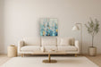 Immerse yourself in the soothing blend of teal shades with this hand-painted abstract canvas. Crafted on a durable, high-quality canvas, the rich textures and brushstrokes bring depth and character, making each piece truly unique. Framed in an elegant champagne gold frame, this artwork arrives ready to display, adding a contemporary touch to your living room, office, or bedroom while supporting a meaningful cause with every purchase.