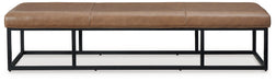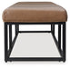This accent bench takes a contemporary approach to everyday function. Showcasing a sleek combo of caramel leather upholstery and a black frame, it's a chic and convenient seating solution. Place this bench by the entryway, or at the foot of your bed, as a spot for slipping on shoes or resting bags and purses.