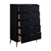 The Kailani 5 Drawer Chest is a perfect blend of modern design, durability, and eco-friendly construction, making it an ideal addition to any bedroom. Expertly crafted from a mix of solid rubberwood, engineered wood, and eco-friendly decorative laminate, this chest offers lasting style and sustainability. The laminate finish not only enhances the chest's appearance but also provides superior resistance to scratches, moisture, and stains, ensuring its beauty with minimal maintenance. The chest features a modern minimalist design with clean lines, a sleek silhouette, and a chic ribbed texture, complemented by slim metallic handles and tapered legs that add both elegance and durability. The drawers, wrapped in luxurious 100% Polyester Velvet and accented by chrome pulls, bring a touch of sophisticated glamour to your space. Each drawer is designed for seamless functionality with fully finished interiors, full-extension slides, and dovetail joinery, providing smooth, snag-free storage and lasting strength. The Kailani 5 Drawer Chest combines style, function, and sustainability, making it a standout piece in any modern bedroom.