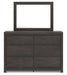 | Details | PCB3370B8: Includes headboard panel, headboard posts, footboard and rails, Made with engineered wood (MDF/particleboard/plywood) and decorative laminate for the right balance of affordability and durability , Dark charcoal finish over replicated oak grain, Decorative laminate replicates natural or man-made material surfaces with consistent color, pattern and texture, Foundation/box spring required, sold separately, Mattress available, sold separately, Assembly required, PCB3370B1: Includes dresser and mirror, Made with engineered wood (MDF/particleboard/plywood) and decorative laminate for the right balance of affordability and durability , Dark charcoal finish over replicated oak grain, Decorative laminate replicates natural or man-made material surfaces with consistent color, pattern and texture, Recessed hand grabs create hardware-less effect, 6 smooth-gliding drawers, Drawer interiors are lined with a faux linen laminate for a clean, finished look , Safety is a top priority, clothing storage units are designed to meet the most current standard for stability, ASTM F 2057 (ASTM International), Drawers extend out to accommodate maximum access to drawer interior while maintaining safety, Mirror attaches to back of dresser; can also be mounted on wall horizontally or vertically, Assembly required, | |